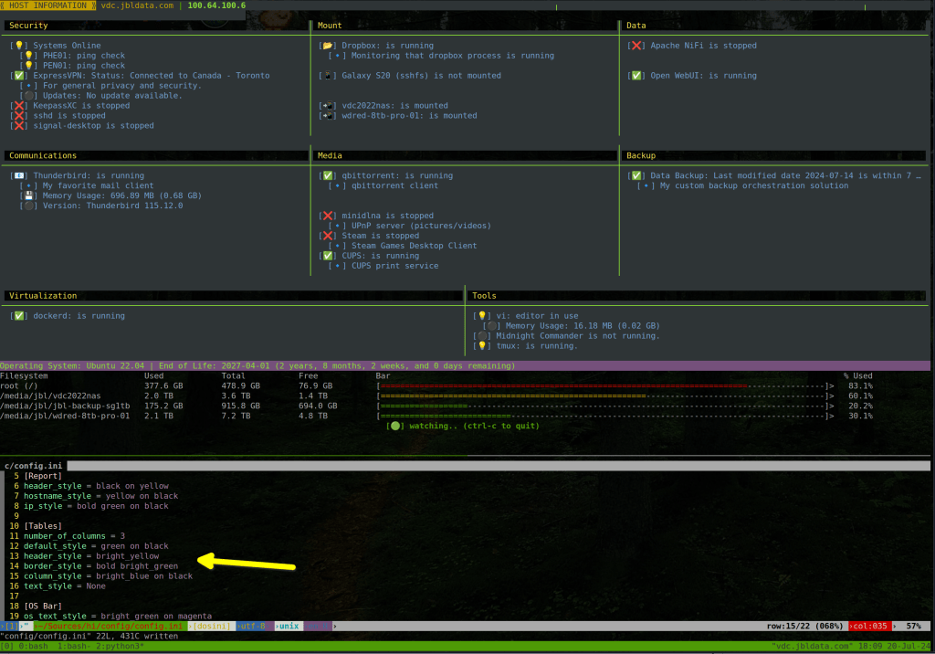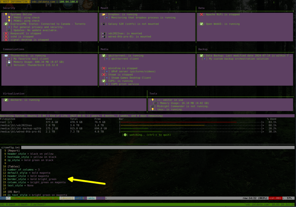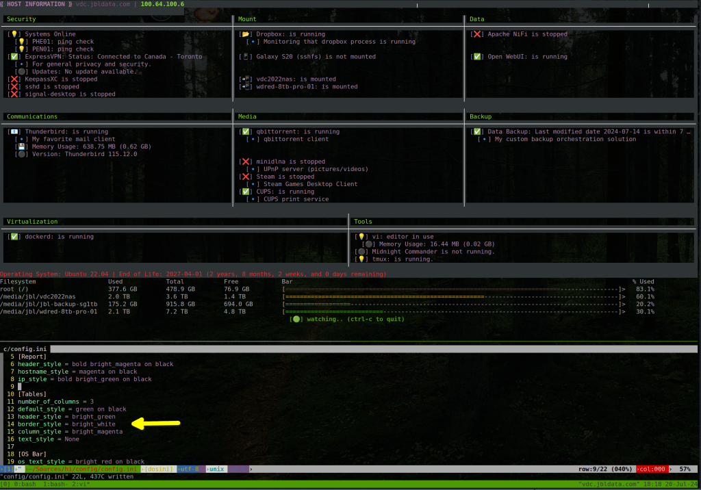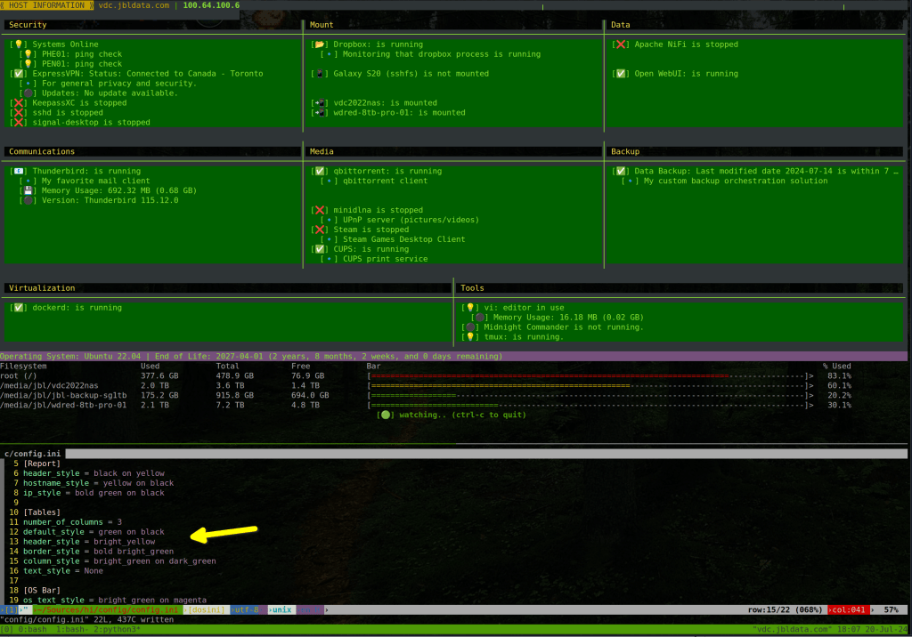 I know my personal taste in terminal color and styling choices may not be for everyone. So, I decided to make the ‘hi’ tool output easily customizable.